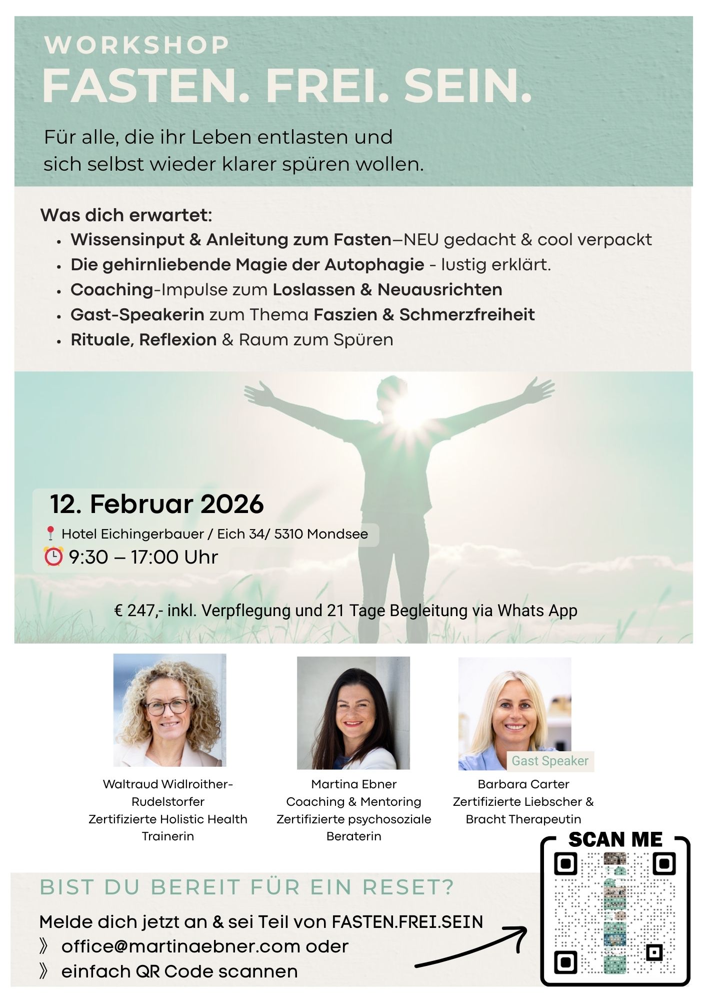 Erlebe Fasten neu: Ein ganzheitlicher Workshop, der Kopf, Ernährung und Bewegung verbindet – und dich auf einer Tiefe unterstützt, wie du es noch nie erfahren hast.